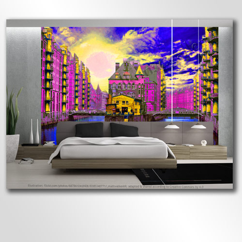 Mein Künstlerherz zog ein Stück Hamburg durch, nein – nicht den Kakao – sondern durch meine Farbtöpfe. Hier siehst Du das Ergebnis. Die Speicherstadt in Hamburg Hafencity im Pop Art Stil. Ein echter Hingucker der für viele „Ahhhh´s“ und „Wowwww´s“ sorgt.